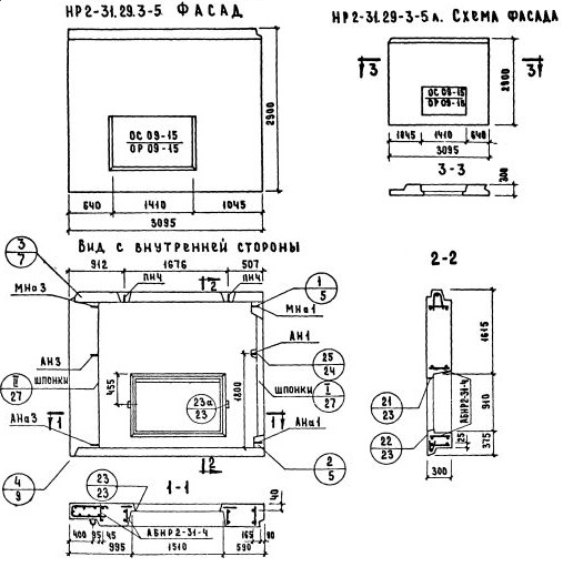 НР2-31.29.3-5 Наружная стеновая панель рядовая по Серии 1.132-1.